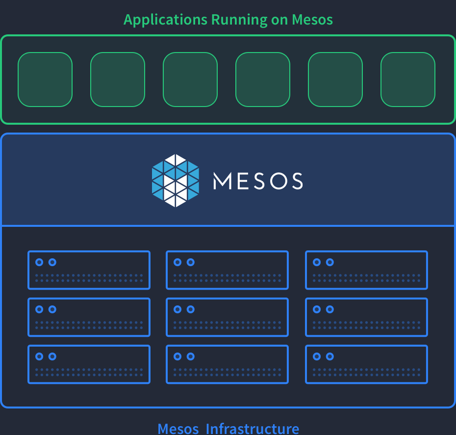 Mesos is built using the same principles as the Linux kernel, only at a different level of abstraction. The Mesos kernel runs on every machine and provides applications (e.g., Hadoop, Spark, Kafka, Elasticsearch) with API’s for resource management and scheduling across entire datacenter and cloud environments.